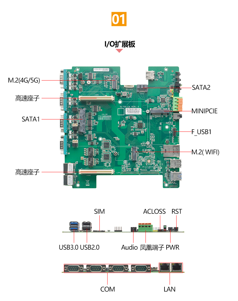 ● 6*RS232/485 DB9 串口,COM5~6支持RS422,COM3~4支持CAN(需加载CAN模块)