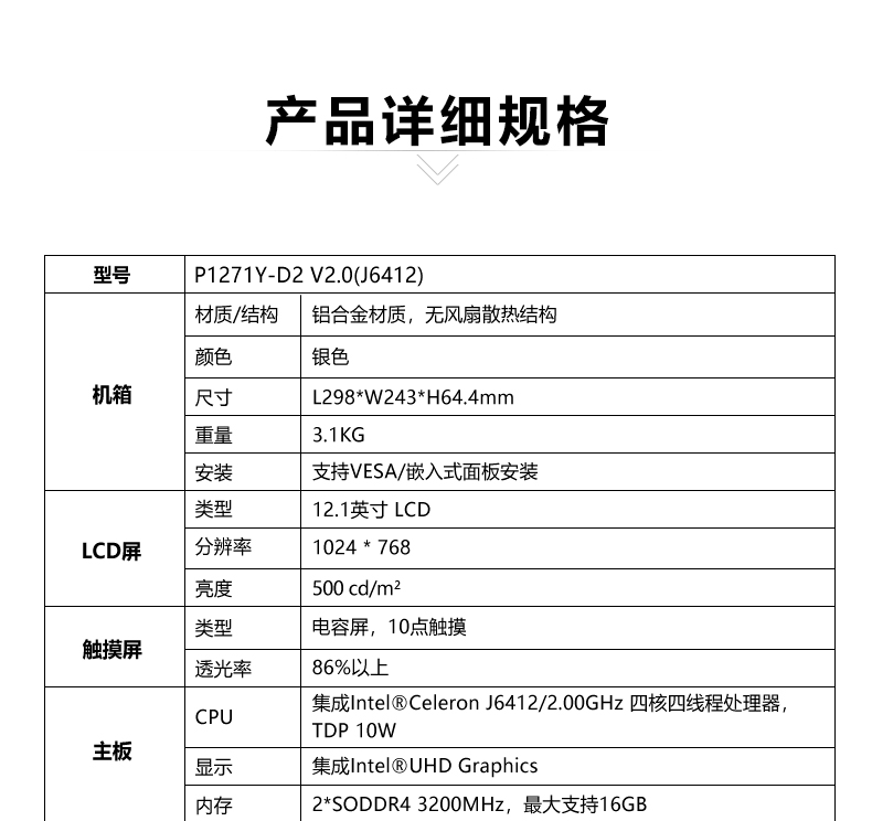 ● 12.1英寸LCD,1027*768,电容式触摸屏