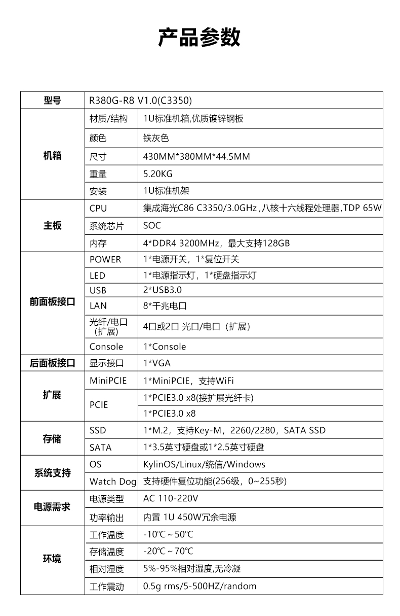 ● 集成海光C86 C3350/3.0GHz 八核十六线程处理器