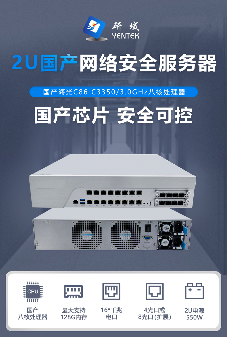 ● 全国产整机,2U标准上架机箱,优质镀锌钢板;铝合金面板