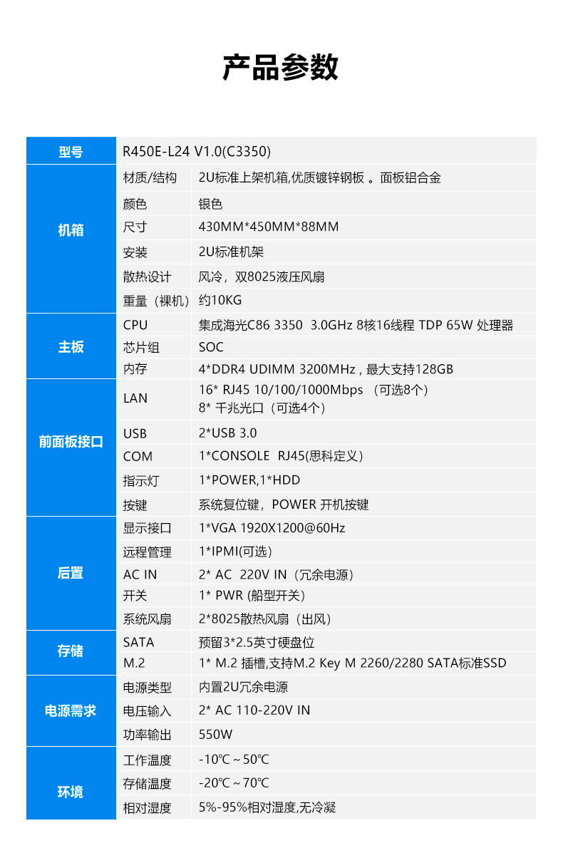 ● 标配2U 冗余电源550W