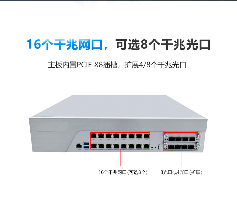 ● 16* 千兆电口。可选扩展4/8 千兆光口 ;最多支持24 LAN