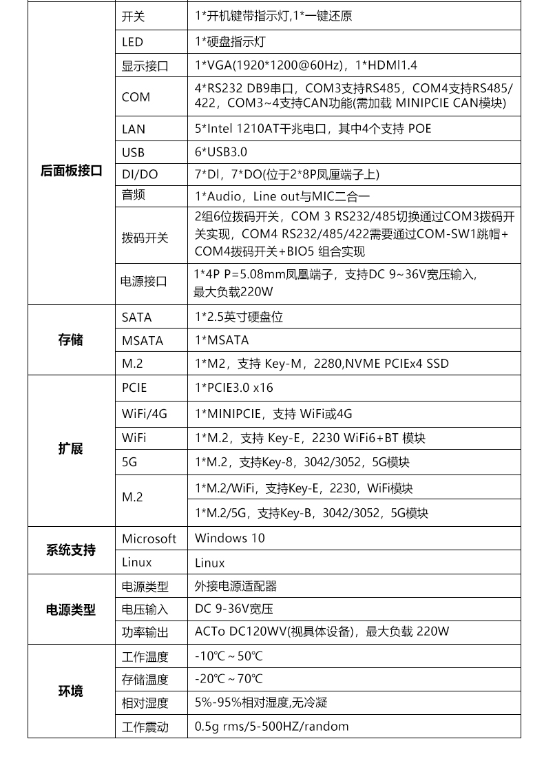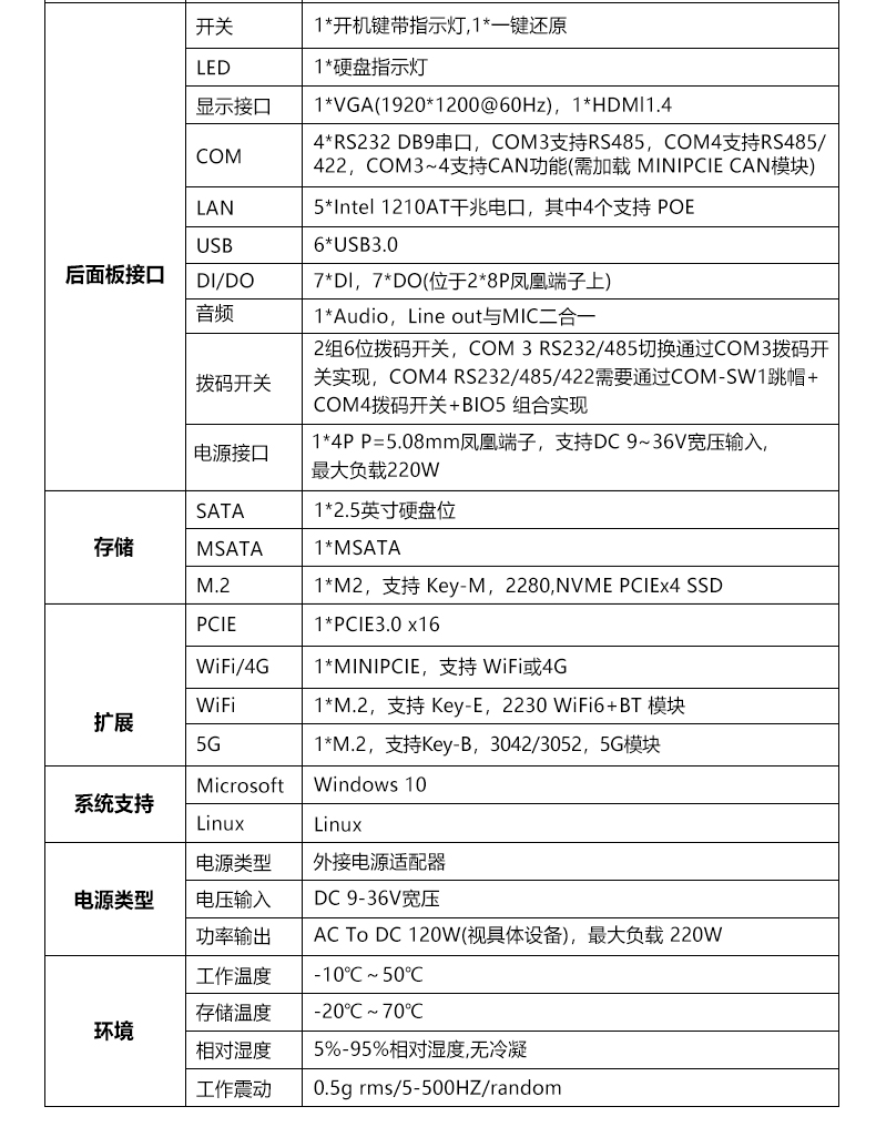 ● 4*RS232 DB9串口(COM3支持RS485/CAN;COM4支持RSRS485/422/CAN)