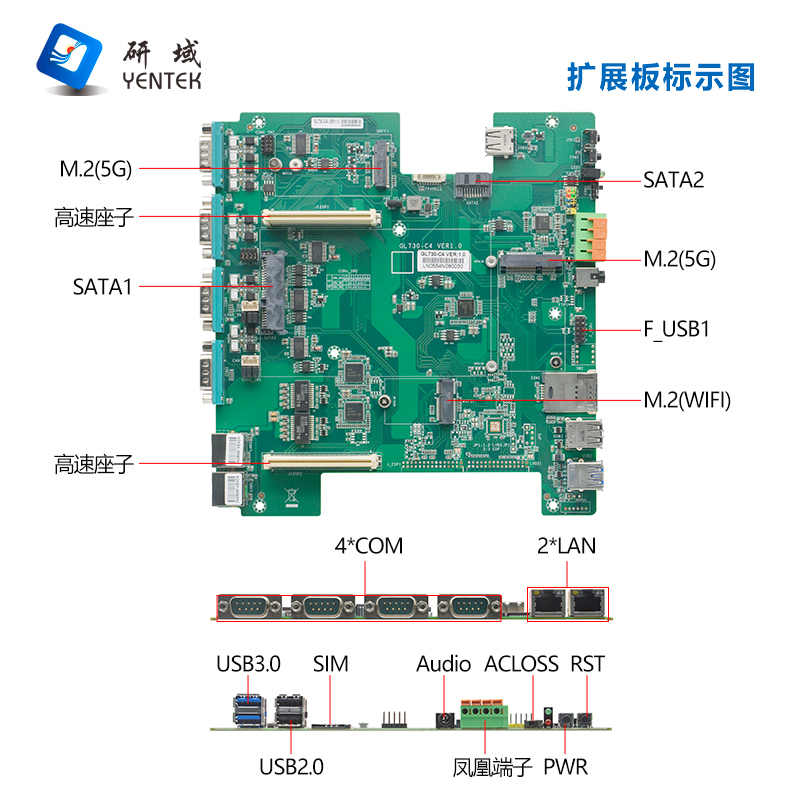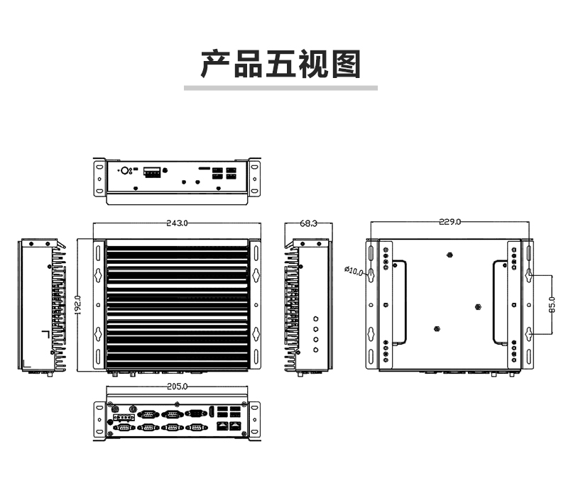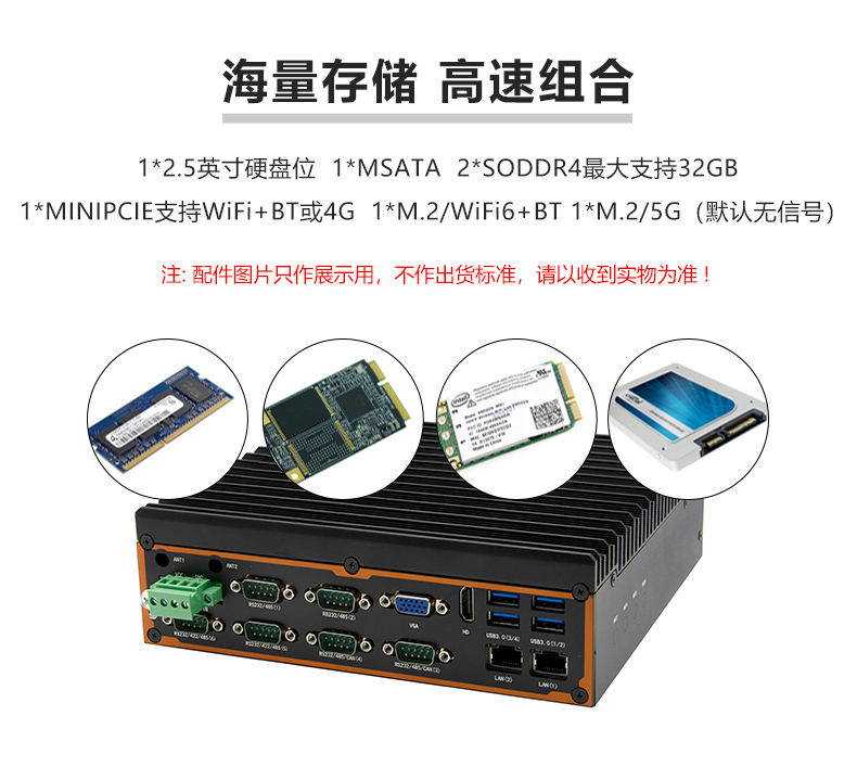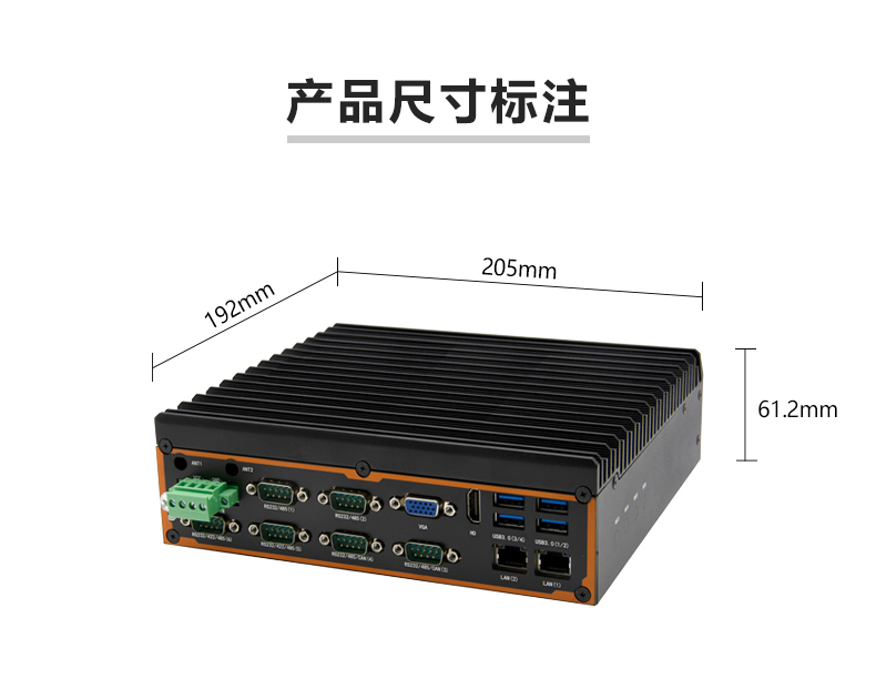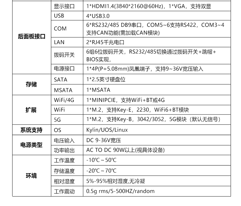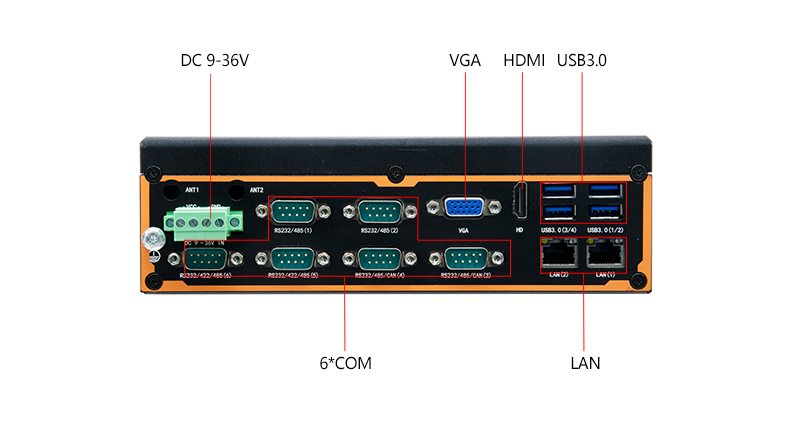 ● 6*RS232/485 DB9 串口,COM5~6支持RS422,COM3~4支持CAN(需加载CAN模块)
