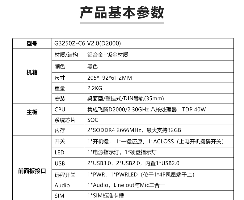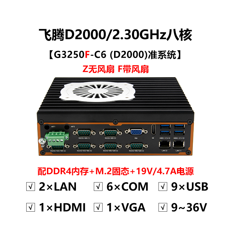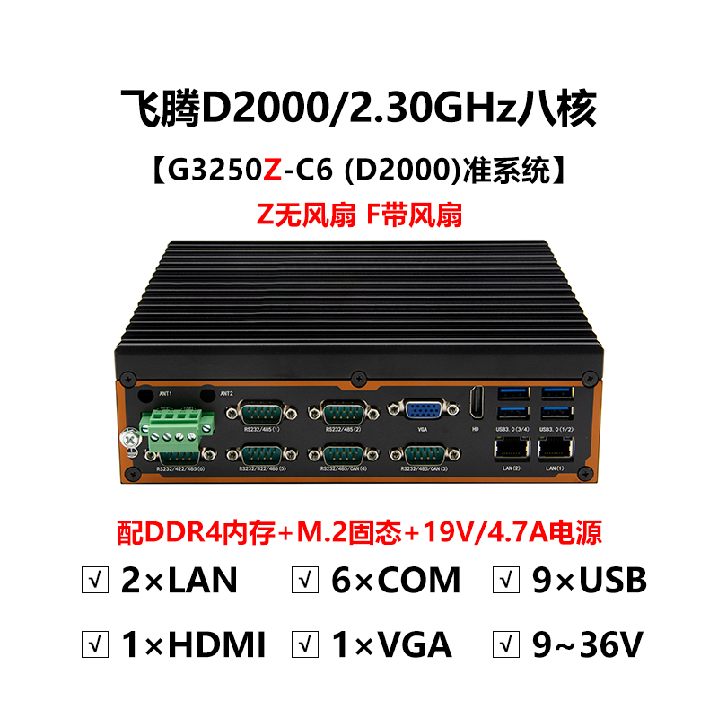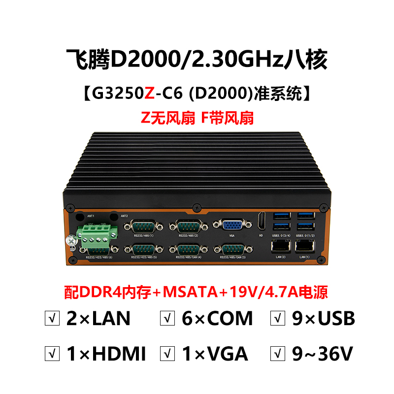 ● 集成飞腾D2000/2.3GHz,八核处理器
