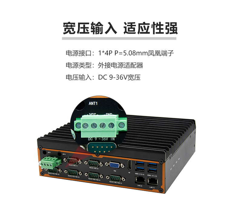 ● 支持DC 9~36V宽压(1*4P凤凰端子)