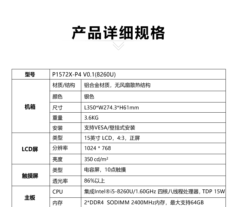 ● 15英寸LCD,1024*768,4:3,电容式触摸屏