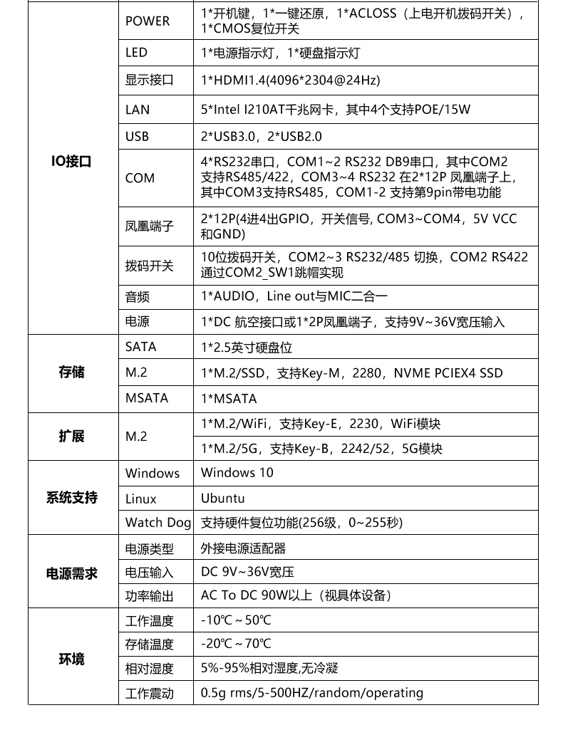 ● 5*Intel I210AT千兆网卡,其中4个支持POE