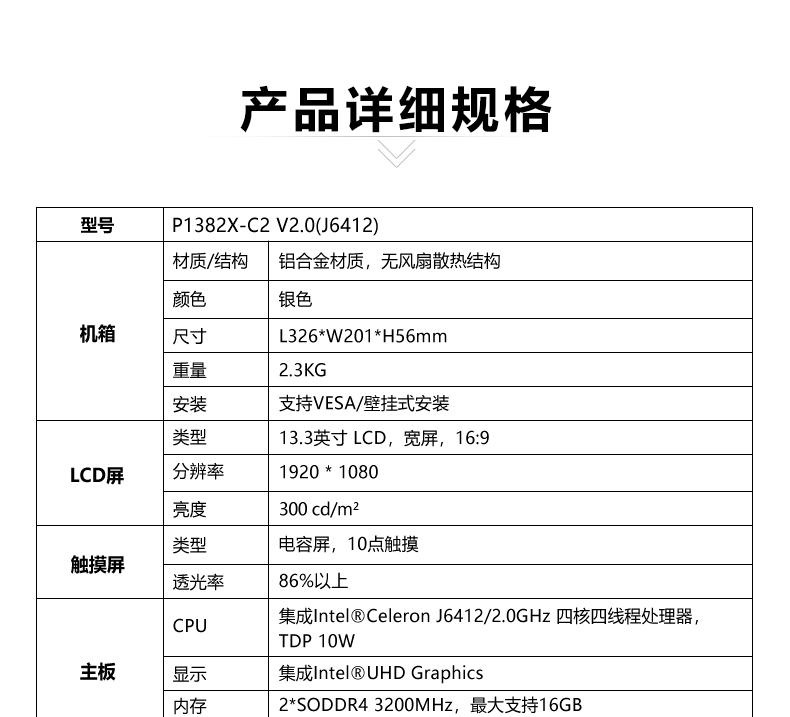 ● 13.3英寸LCD/16:9/1920*1080,电容式触摸屏