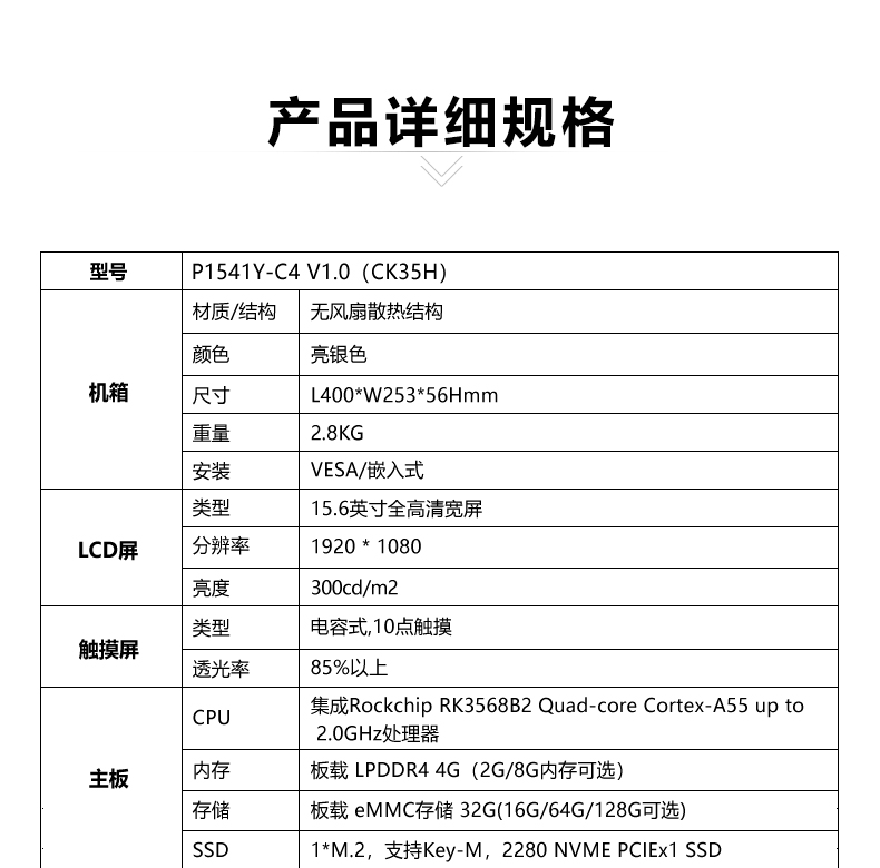 ● 15.6英寸宽屏LCD,1920*1080,电容式触摸屏