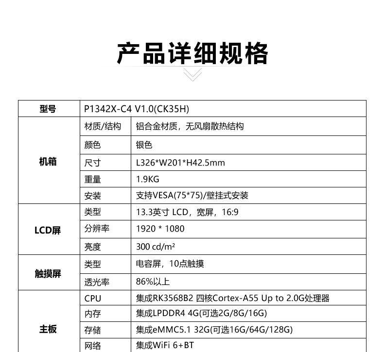 ● 13.3英寸LCD/16:9/1920*1080,电容式触摸屏