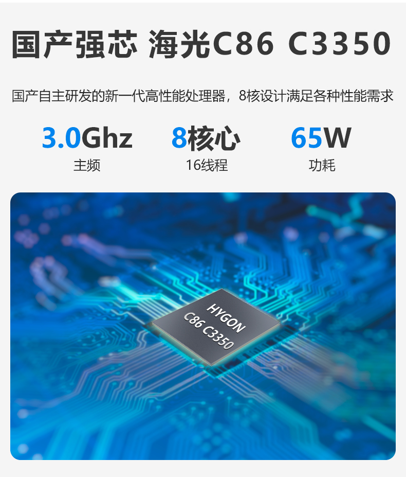 ● 集成海光C86 C3350/3.0GHz 八核十六线程处理器