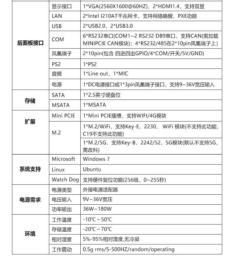● 6*RS232串口;2*RS232 DB9串口,支持CAN,4*RS232/485在2*10pin凤凰端子上